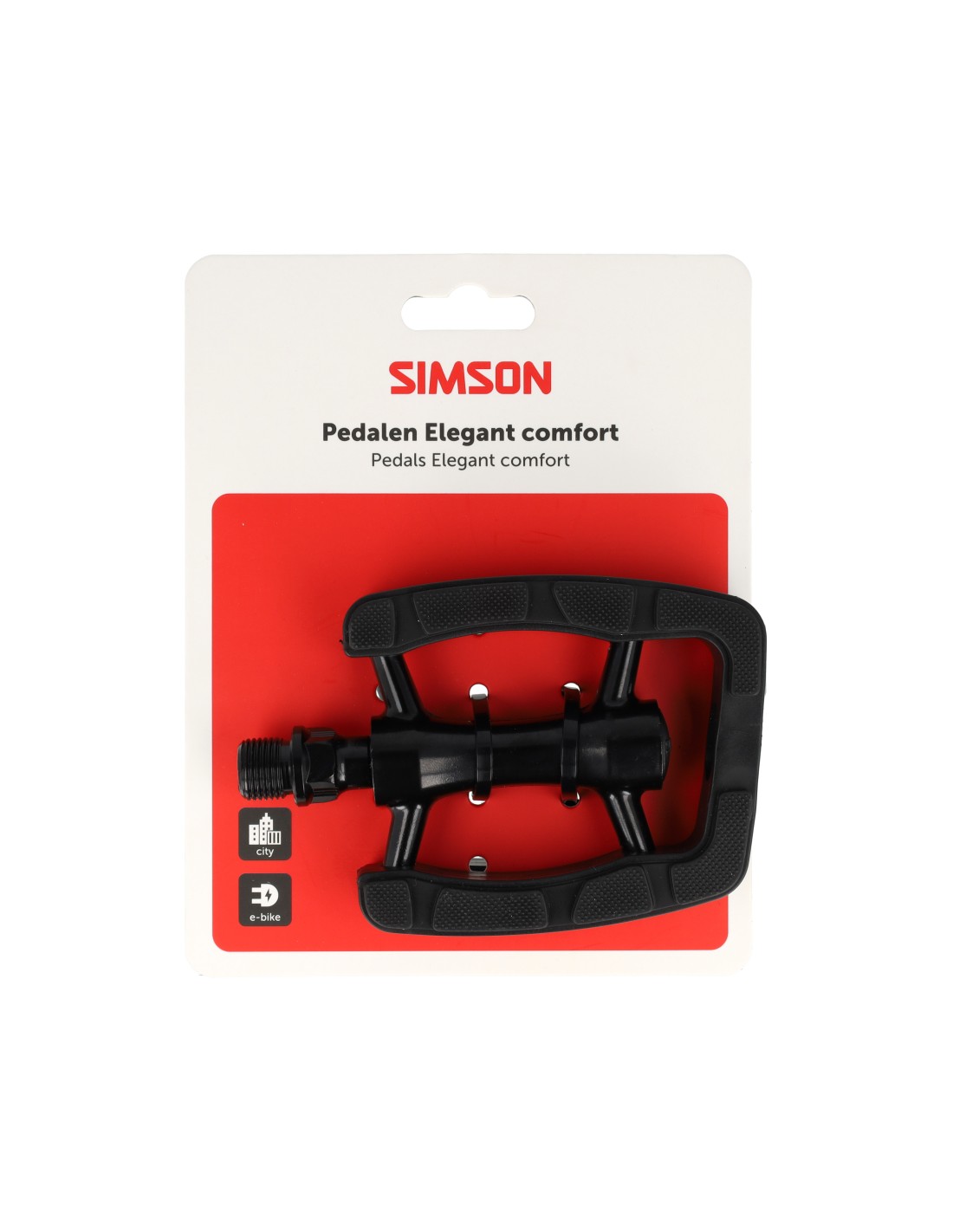 De Simson pedalen elegant comfort zijn geschikt voor vrijwel iedere fiets, maar met name populair bij de sportieve fietser met stads-, tour- en E-bike fiets. De pedalen van aluminium hebben reflectoren en een grijze kunststof anti-slip laag voor optimale grip. De pedalen hebben zijn te monteren met behulp van een Simson pedaalsleutel.