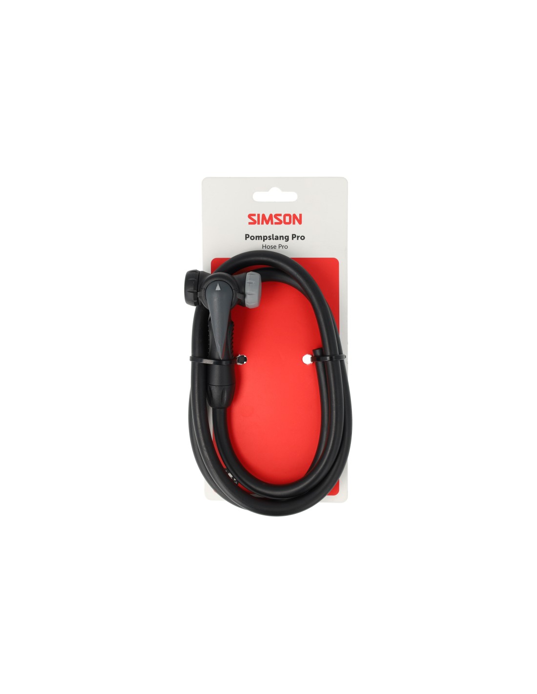 De Simson Fietspompslang met dubbele pompkop past op de meest voorkomende ventielen. De losse slang en is geschikt voor de Simson hogedrukpomp met manometer.