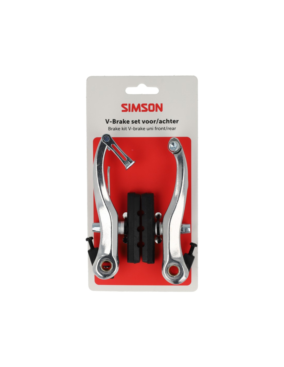 Deze Simson V-Brake remmenset is een complete remmenset voor V-brake remsystemen, geschikt voor zowel voor- als achterrem. Deze complete set wordt geleverd inclusief remblokken, twee bevestigingsbouten, remkabelbuis en rubber huls.