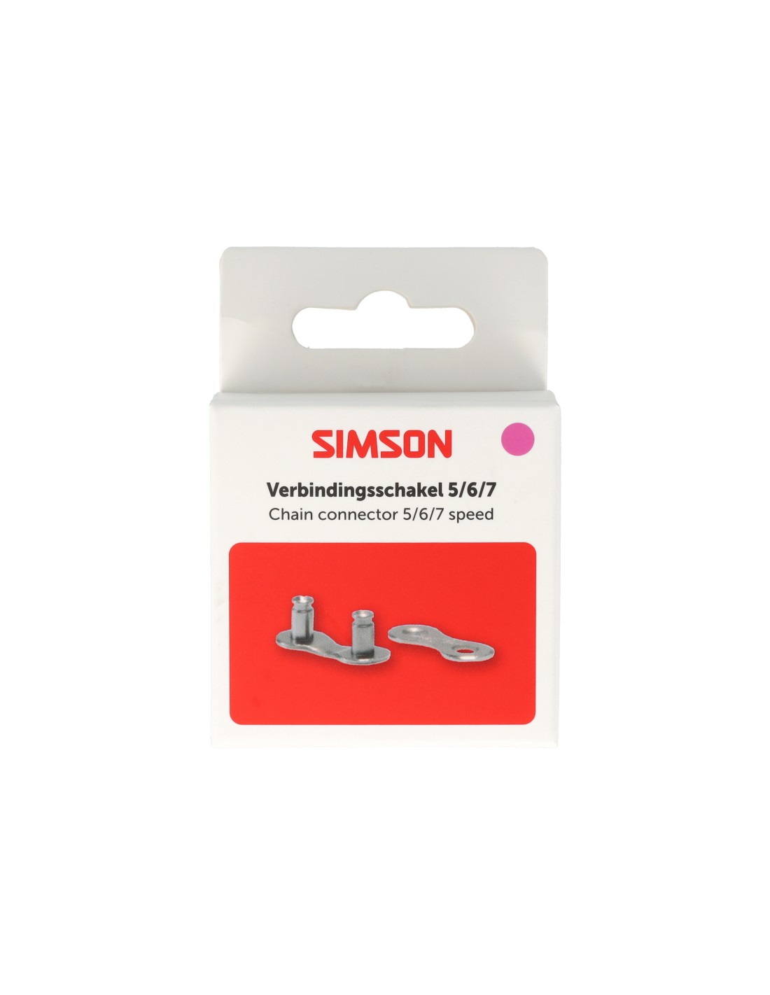 De Simson Verbindingsschakel 5/6/7 speed heeft een maat van 1/2x3/32. Met deze verbindingsschakel kan eenvoudig een gebroken of nieuwe fietsketting worden verbonden. Deze verbindingsschakel gebruik je voor fietskettingen met een 5, 6 of 7 derailleur versnelling zoals de Simson Ketting Derailleur 5/6/7. Klik de verbindingsschakel aan het uiteinde van de ketting vast zonder het gebruik van gereedschap.
