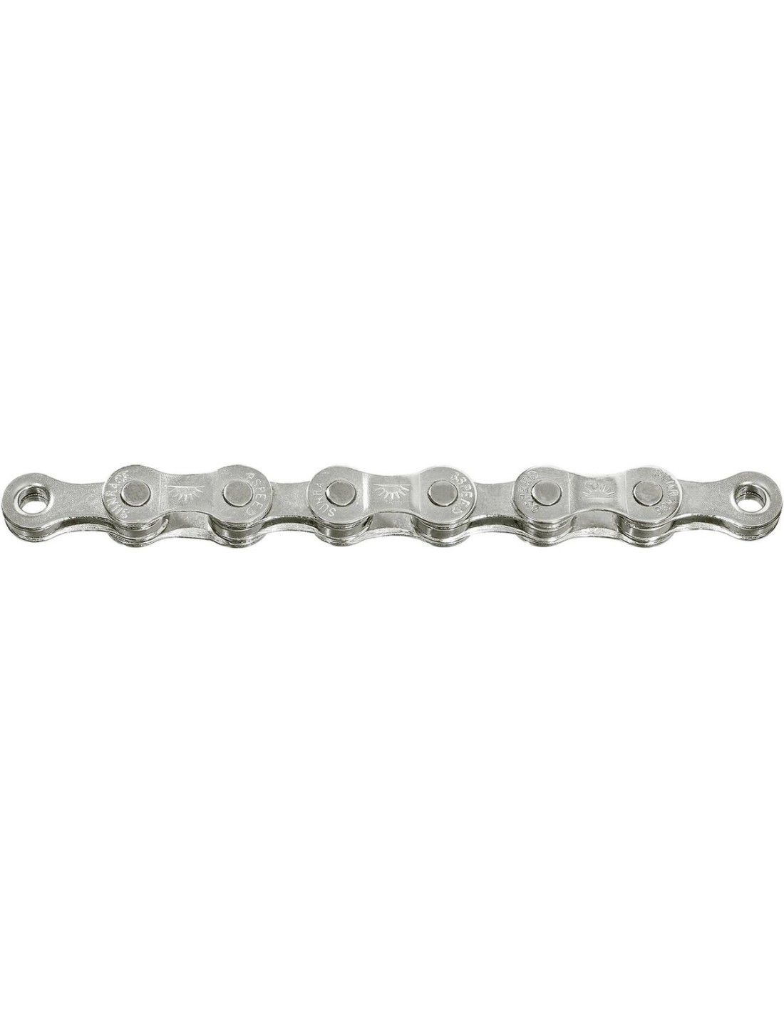 De SunRace CNM84 is een hoogwaardige ketting ontworpen voor 7- en 8-speed derailleurversnellingssystemen. Met een lengte van 116 schakels en een breedte van 3/32" is deze ketting geschikt voor zowel stadsfietsen als mountainbikes. De ketting is vervaardigd uit hoogwaardig staal en heeft een zilvergrijze afwerking, wat zorgt voor een strakke uitstraling en bescherming tegen corrosie. Let op: deze ketting is niet geschikt voor frictieversnelling (non-indexed systemen).