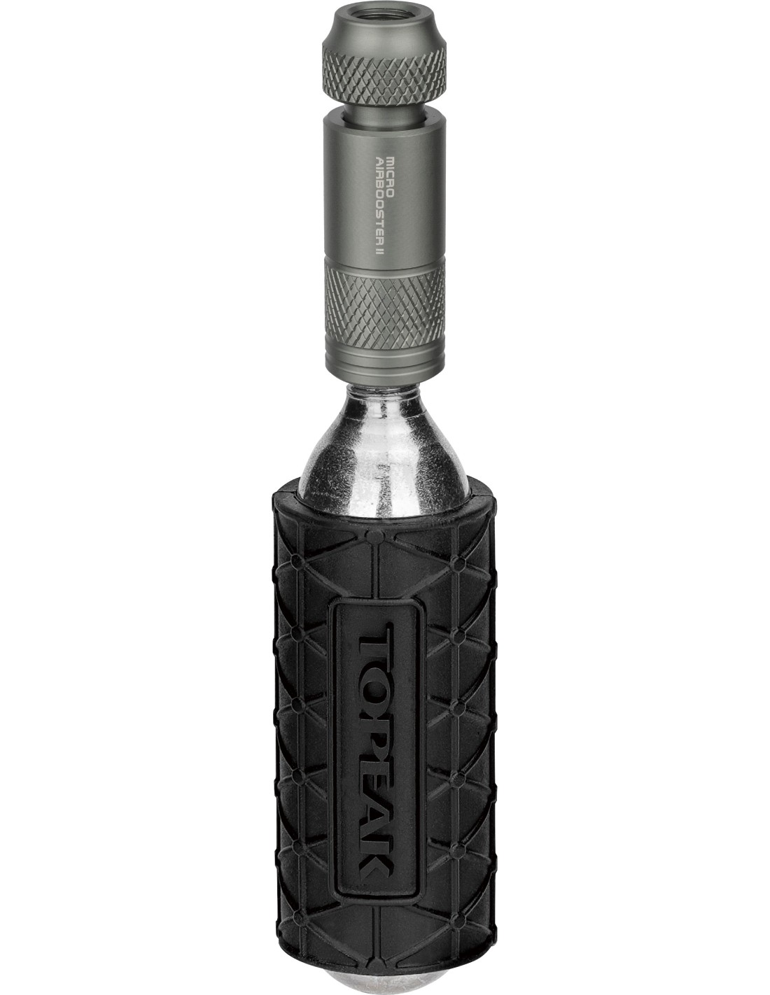 De AirBooster is een ongelooflijk kleine, lichtgewicht en gemakkelijk te gebruiken CO2-inflator. CNC gefreesd uit massief aluminium, de gebogen kop AirBooster past op Presta en Schrader kleppen en dankzij het speciale ontwerp kan de gebruiker de stroming aanpassen terwijl hij of zij de band vult. Ontwerp met twee uiteinden maakt opslag van cartridges mogelijk. De meegeleverde duurzame CO2-hoes van siliconen beschermt de handen tijdens het oppompen.