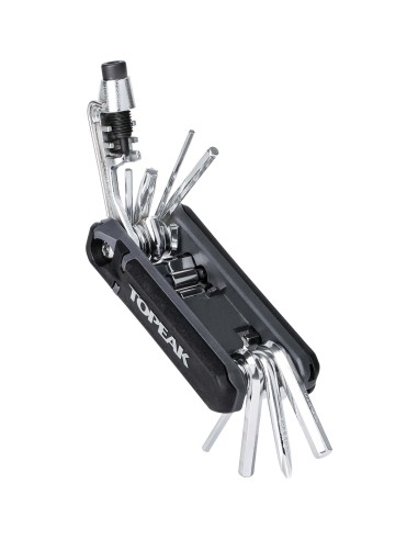 Een bekroonde multifunctionele multi-tool met 21 functies met een nieuw ontwerp om de T15, T25, 8 mm hex tool op te slaan. Aan de zijkant zijn bandenlichters gemonteerde. Inclusief zelfspannend gereedschap (T25 Torx-bit) en Presta Core Tool voor draai of trek de tweedelige Presta-ventielkernen aan. De Hexus III is een uitstekende keuze voor zowel weg- als mountainbikers.