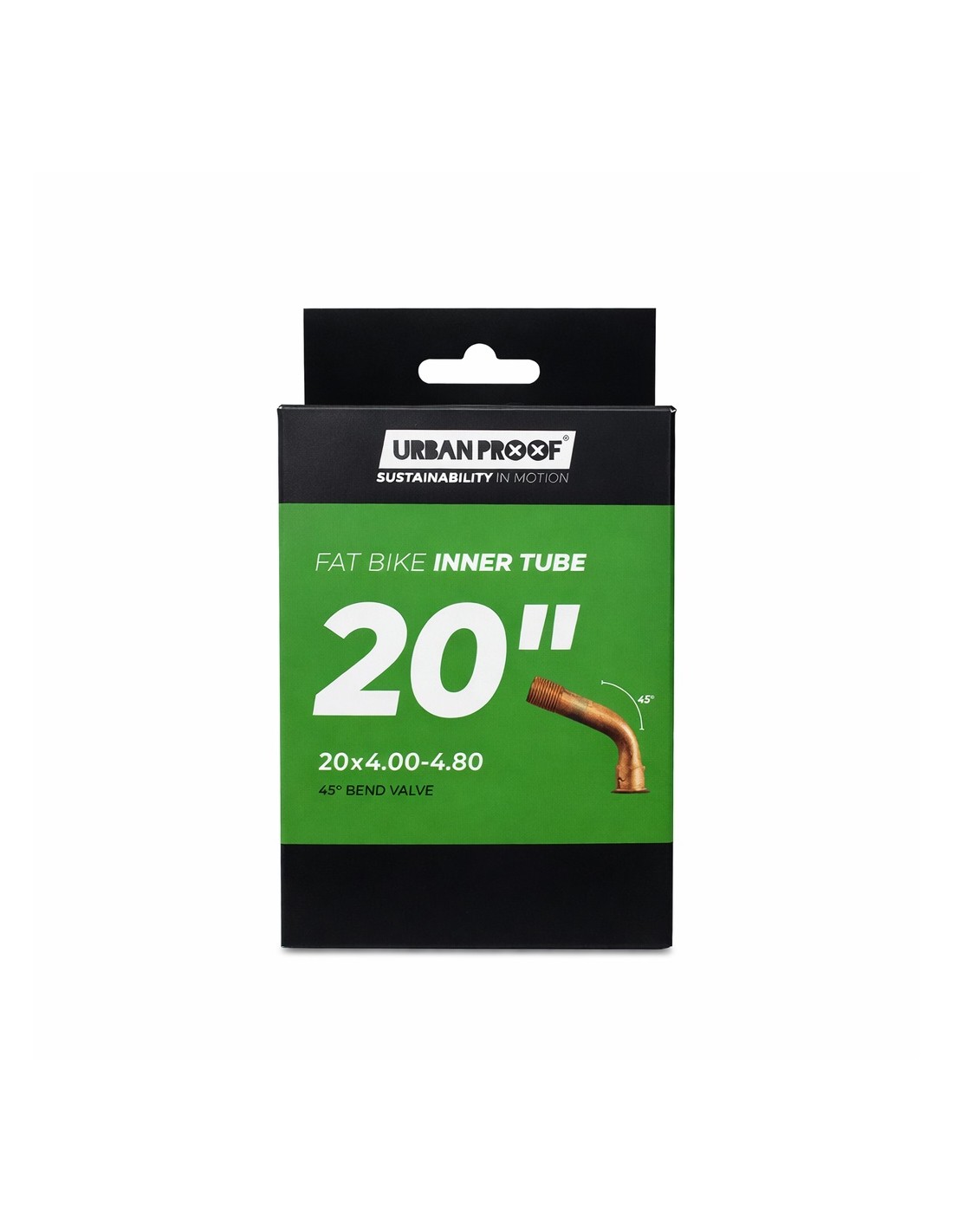 Urban Proof binnenband in de maat 20 x 4.00, ETRTO 100-406. Voorzien van een gebogen AV Auto/Schräder ventiel 45 graden. Geschikt voor fatbikes.