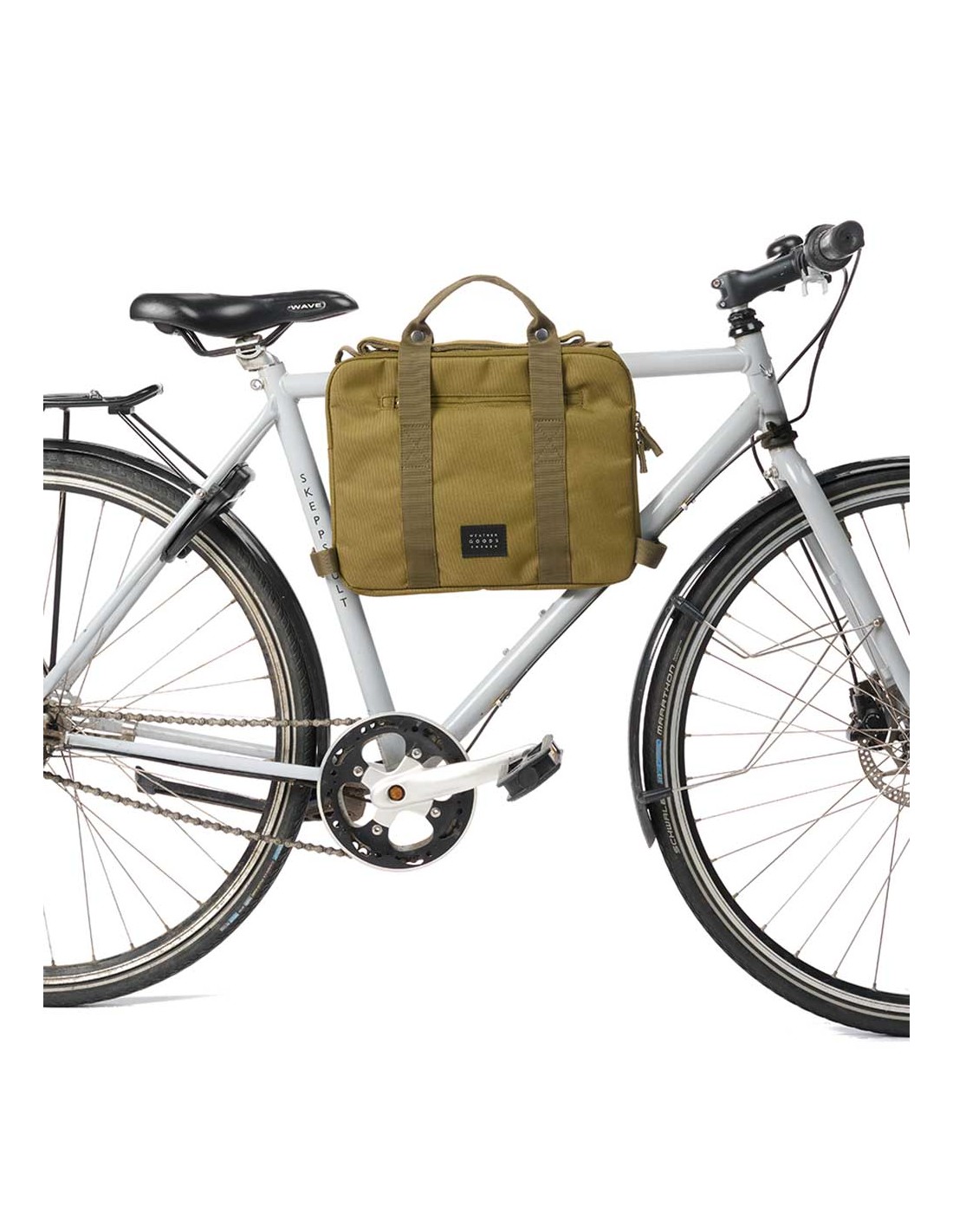 De CITY Frame Bag is een stijlvolle en praktische oplossing voor stadsfietsers die liever zonder rugzak reizen. Ontworpen voor fietsen met een hoge framebuis, wordt de tas stevig aan het frame bevestigd zodat alles in balans en beschermd blijft. Het slanke ontwerp met twee compartimenten biedt ruimte voor een 13” laptop en accessoires, terwijl de schouderriem netjes wordt weggewerkt tijdens het fietsen. Gemaakt van waterdicht, gerecycled polyester met duurzame YKK-ritsen en messing details, combineert de tas minimalistisch Scandinavisch design met dagelijkse functionaliteit — perfect voor woon-werkverkeer en stijlvol genoeg voor op kantoor.