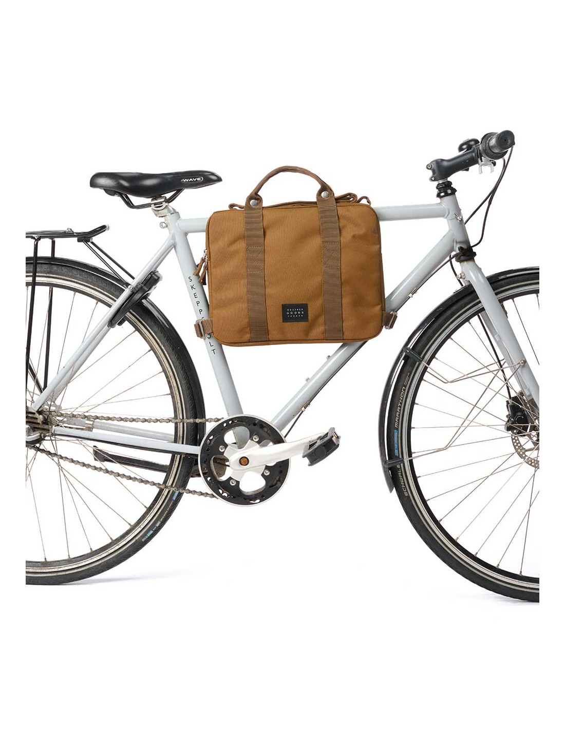 De CITY Frame Bag is een stijlvolle en praktische oplossing voor stadsfietsers die liever zonder rugzak reizen. Ontworpen voor fietsen met een hoge framebuis, wordt de tas stevig aan het frame bevestigd zodat alles in balans en beschermd blijft. Het slanke ontwerp met twee compartimenten biedt ruimte voor een 13” laptop en accessoires, terwijl de schouderriem netjes wordt weggewerkt tijdens het fietsen. Gemaakt van waterdicht, gerecycled polyester met duurzame YKK-ritsen en messing details, combineert de tas minimalistisch Scandinavisch design met dagelijkse functionaliteit — perfect voor woon-werkverkeer en stijlvol genoeg voor op kantoor.