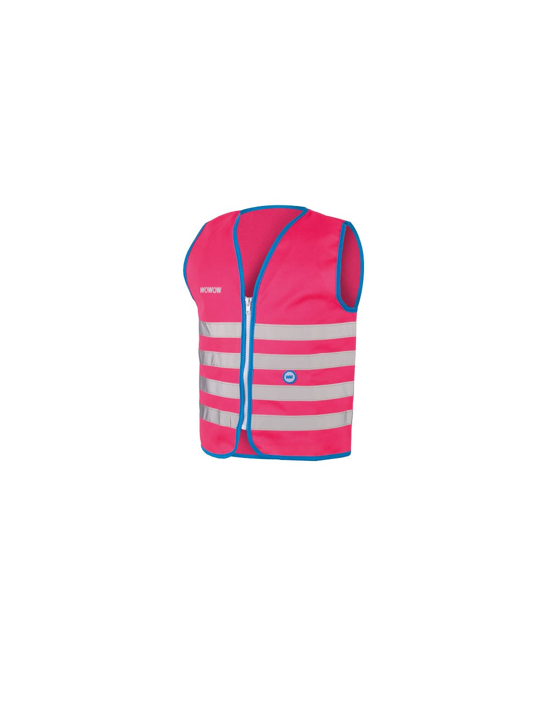 Wowow Fun Jacket Pink Medium 100% Polyester 120g in fluorescerende roze kleur. 4 Reflecterende banden van 2,5cm op voor- en achterkant. Sluit aan de voorkant d.m.v. rits. Met label voor de naam. Maat M