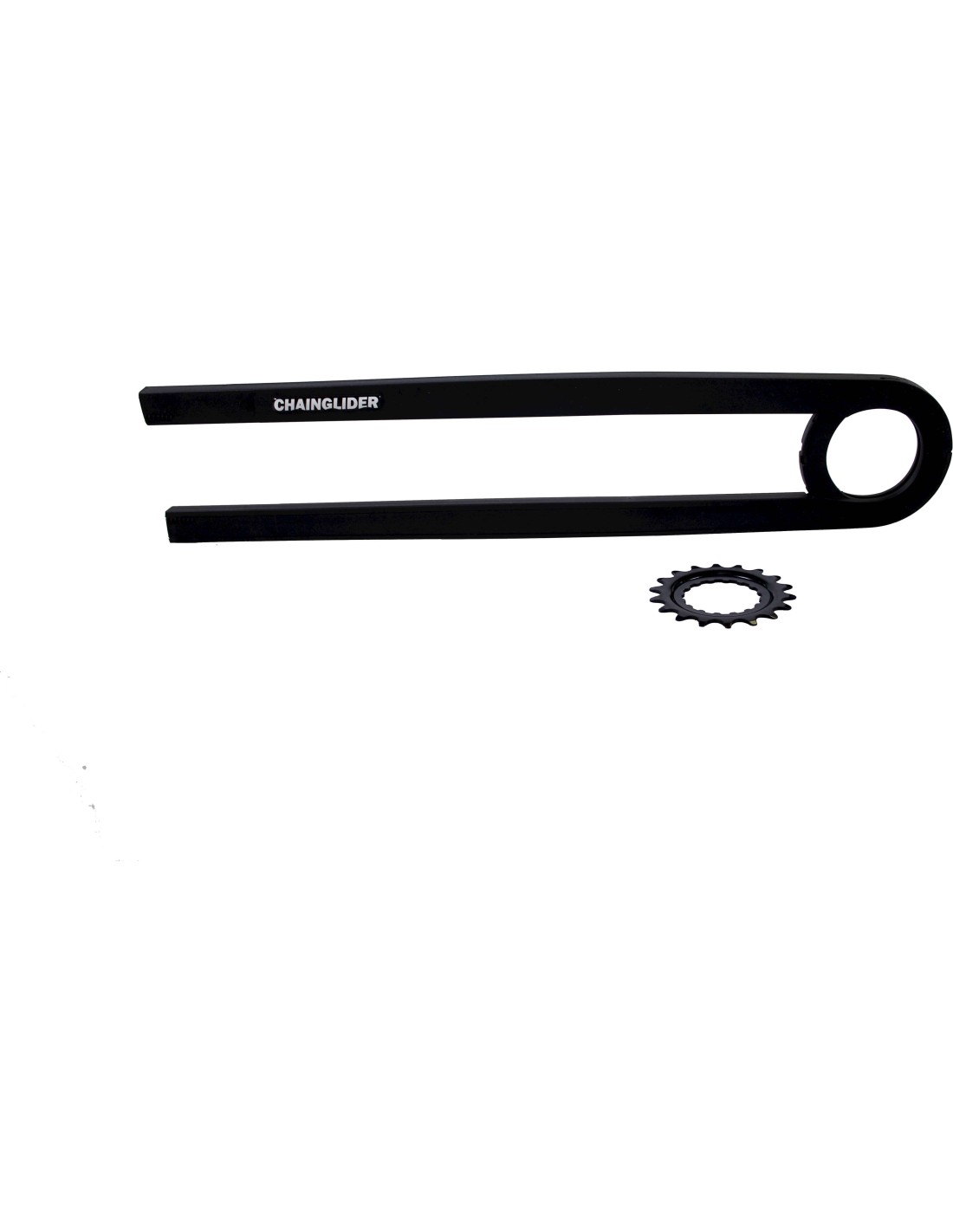 Hebie voorstuk Chainglider 18 tands Bosch Generation 2. zwart, inclusief tandwiel, benodig achterstuk is artikel HCG350RBE1 afstand gemeten hart op hart trapas en achteras is 435-486mm