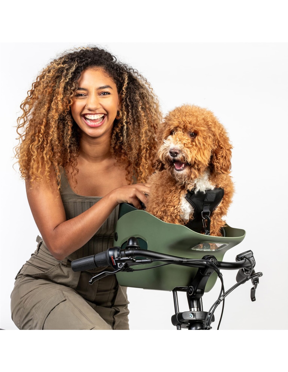 De Kvisp hondenmand voor honden is een fietszitje, waarmee hondenbezitters hun hond gemakkelijk en veilig mee kunnen nemen op de fiets. U hoeft uw hond niet thuis te laten terwijl u vrienden in de stad ontmoet, boodschappen doet of samen een rondje gaat fietsen. Monteer het zitje op uw fiets met de meegeleverde montagebeugel die wordt gebruikt door 's werelds meest gerenommeerde merken kinderzitjes. De multifunctionele loop- en fietsharnas voor de veiligheid wordt meegeleverd. Zet de hond veilig vast in het zitje met de veiligheidsriemen (één aan de voorkant, één aan de achterkant) zodat hij er niet onverwachts uit kan springen en hem toch de ruimte geeft om comfortabel te bewegen. Kvisp heeft als missie om een revolutie teweeg te brengen in de wereld van hondenmobiliteit. Kvisp komt van het Nederlandse woord "kwispelen" - want honden blij maken is wat wij willen doen. We willen van elke rit op de fiets een onvergetelijk avontuur maken met je beste vriend. Het zitje is geschikt voor honden tot 12kg. Het zitje is makkelijk schoon te maken. Het zitje heeft een venster zodat je gemakkelijk het ebike display kan aflezen. Binnenmaat mand: 33x22cm. Harnas maatvoering. Maat S: nek 22-36cm, borst 34-54cm. Maat M: nek 24-44cm, borst 49-69cm.