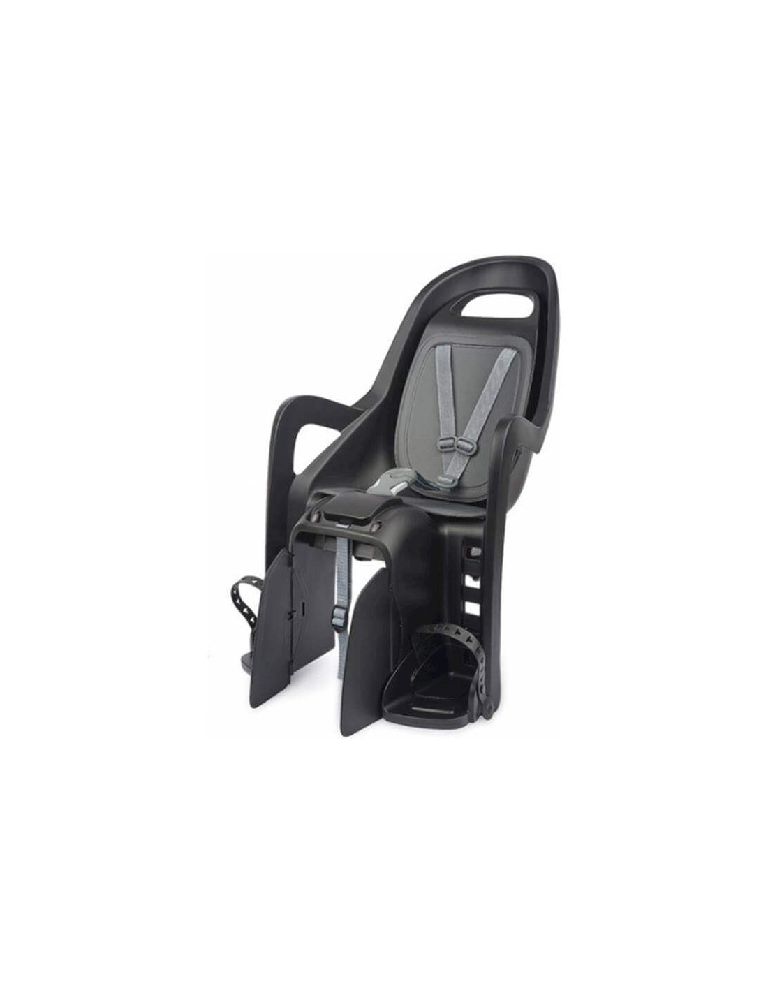 De Polisport Groovy met bagagedragerbevestiging biedt een veilige en gebruiksvriendelijke oplossing voor ouders die hun kind comfortabel mee willen nemen op de fiets. Dit model is ontworpen voor bagagedragers met een breedte van 120–175 mm en ronde framebuizen van Ø10–16 mm, en vereist een minimale draagcapaciteit van 27 kg volgens ISO 11243:2016. Het draagsysteem is volledig gereedschaploos: dankzij het eenvoudige draaimechanisme plaats je het zitje binnen enkele seconden stevig op de bagagedrager – ideaal voor dagelijks gebruik, woon-werkverkeer of wanneer je het zitje na de rit snel wilt opbergen.De vernieuwde Groovy® heeft een fris, modern design met glanzende details en een geïntegreerde reflector aan de achterzijde voor extra zichtbaarheid. Het geïntegreerde draagsysteem zorgt voor een stabiele en veilige bevestiging, terwijl het zitje eenvoudig naar voren of achteren kan worden verschoven om beter aan te sluiten op de lichaamslengte van het kind of de geometrie van de fiets.Op het gebied van veiligheid voldoet de Polisport Groovy volledig aan de EN 14344:2022-norm en draagt het de GS Mark. Het zitje is uitgerust met een verstelbaar 3-punts veiligheidsharnas, een kindveilige sluiting, een extra veiligheidsframe-riem en uitgebreide voetbescherming.Ook het comfort van het kind staat centraal. De armsteunen hebben een ergonomische vorm, het ontwerp is helmvriendelijk, en de voetsteunen zijn verstelbaar in vier standen. Het zachte, waterdichte kussen zorgt voor een aangename rit, terwijl het harnassysteem eenvoudig kan worden aangepast aan de groei van het kind.Het zitje is geschikt voor kinderen van ongeveer 9 maanden tot 6 jaar, met een maximaal gewicht van 22 kg en een maximale lengte van 110 cm. Voor een goede pasvorm zijn gewicht en lengte leidend. De Groovy is daarnaast compatibel met e-bikes en pedelecs tot 25 km/u.Met afmetingen van 800 × 395 × 260 mm en een lichte constructie van slechts 2,62 kg biedt het achterzitje een perfecte balans tussen gebruiksgemak, veiligheid en comfort. Het benodigde bagagedragerrek is niet inbegrepen.