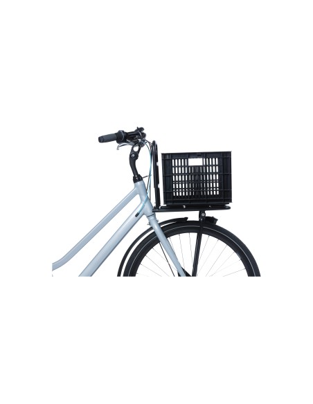 Basil fietskrat M, gerecycled kunststof, medium formaat, incl. kratclicker, geschikt voor MIK, Racktime, I-Rack, MonkeyLoad en AtranVelo platen (apart verkrijgbaar), excl. bev. materiaal, max. gewicht afhankelijk van max. toelaatbaar gew. drager, 29.5L, black. Afmetingen: 33 x 44 x 25 cm