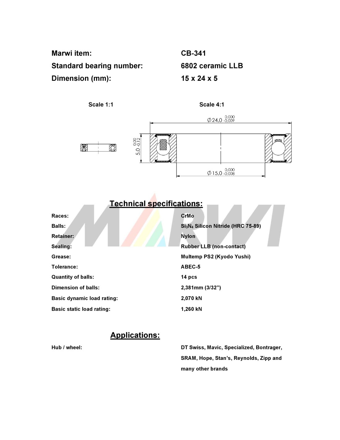 Union Keramische kogellager CB-341 6802 LLB (15x24x5)