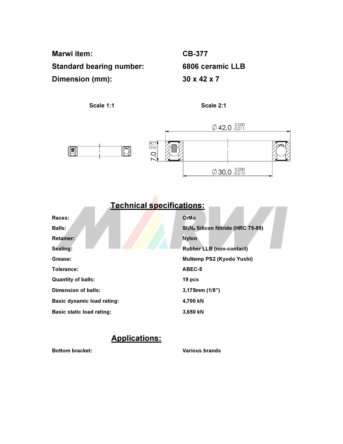 Union Keramische kogellager CB-377 6806 LLB (30x42x7)