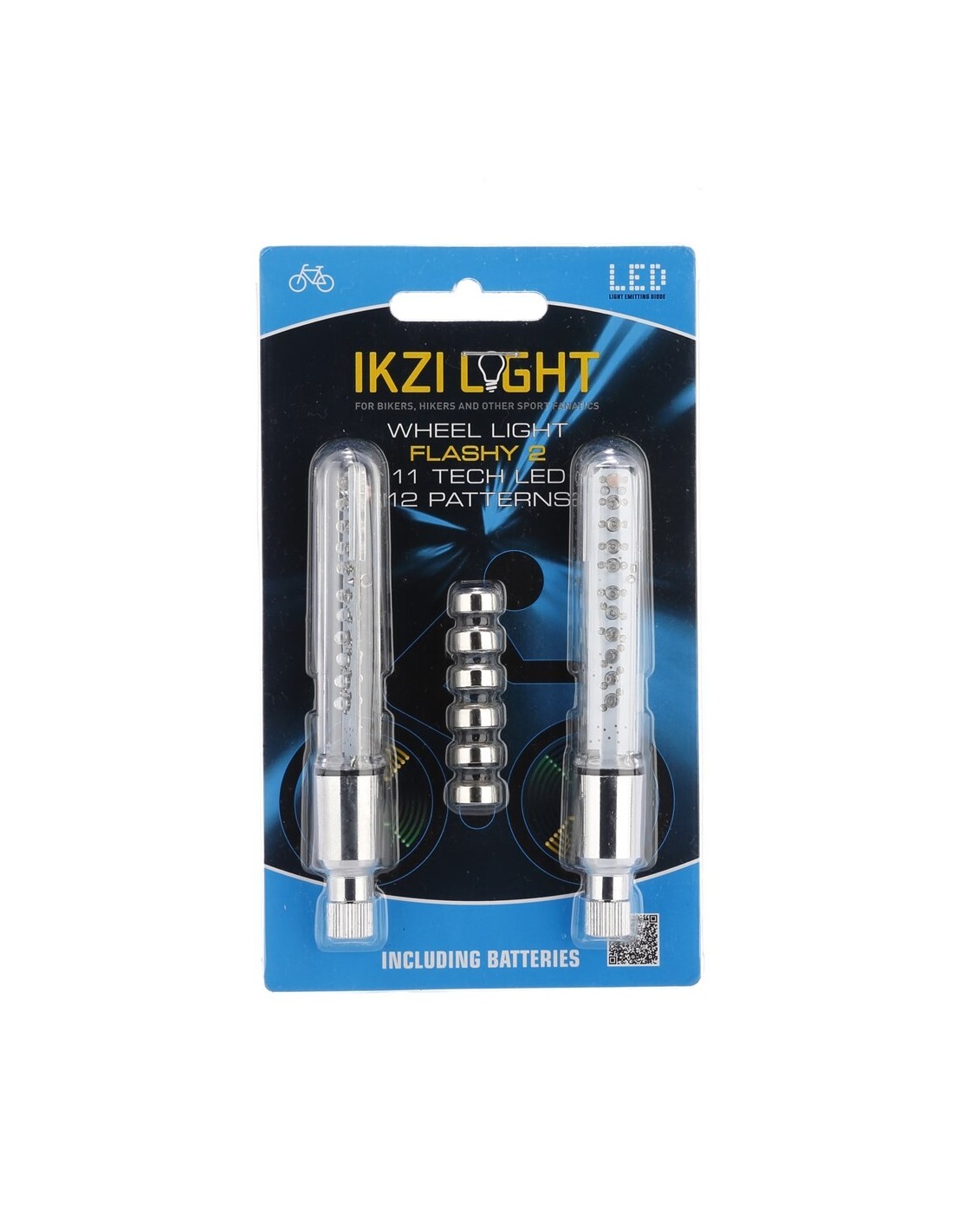 IKZI ventiellichten, Geschikt voor alle ventielen (Dunlop, Frans en Auto. Pimp jouw fiets met dit IkziLight wiellicht. Maar liefst 11 heldere LED’s versieren het wiel en maken het goed zichtbaar in het donker. Deze set bestaat uit 2 LED-staven met elk 11 LED’s in 5 verschillende kleuren. De 5 kleuren maken dat er 12 patronen gemaakt kunnen worden. De wiellicht set wordt geleverd met 6 batterijen LR44