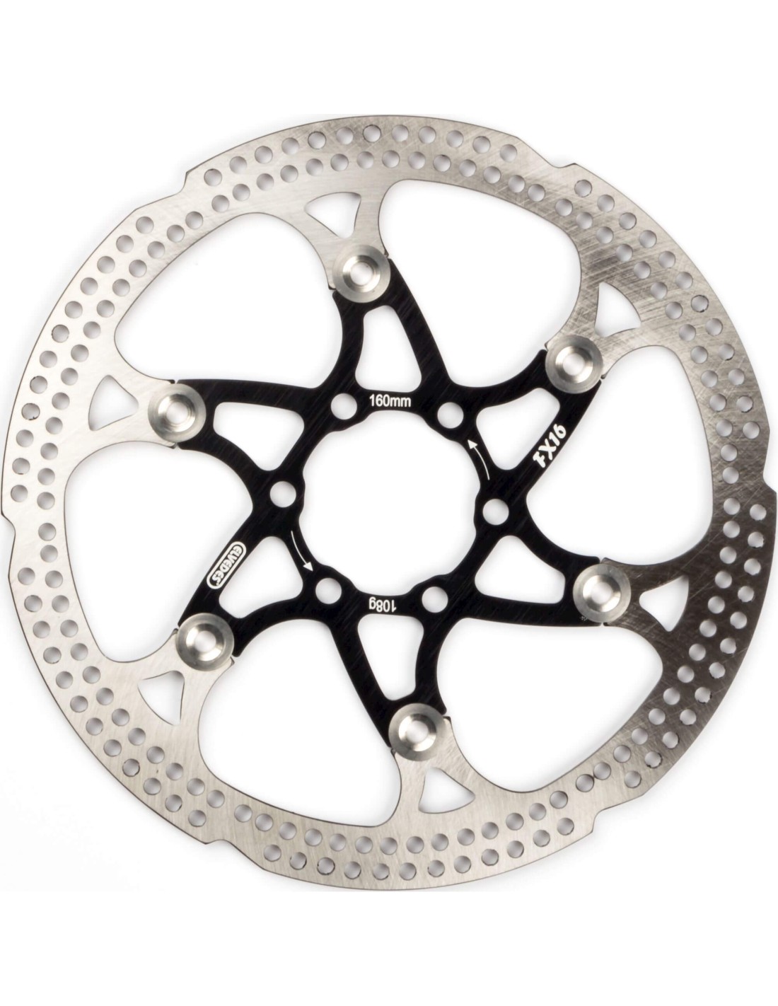 Elvedes remschijf 160mm zwart, Floating Rotor ZWART 160mm RVS+Aluminium kern, 6-gaats, gewicht 108 gram geleverd met boutjes 2015146