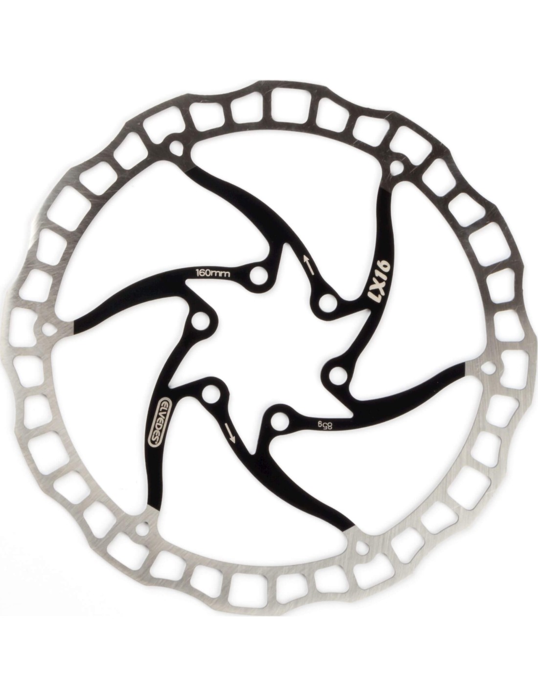 Elvedes remschijf LX16 One Piece 160mm zwart, RVS, 6-gaats, gewicht 85 gram geleverd met boutjes 2015194