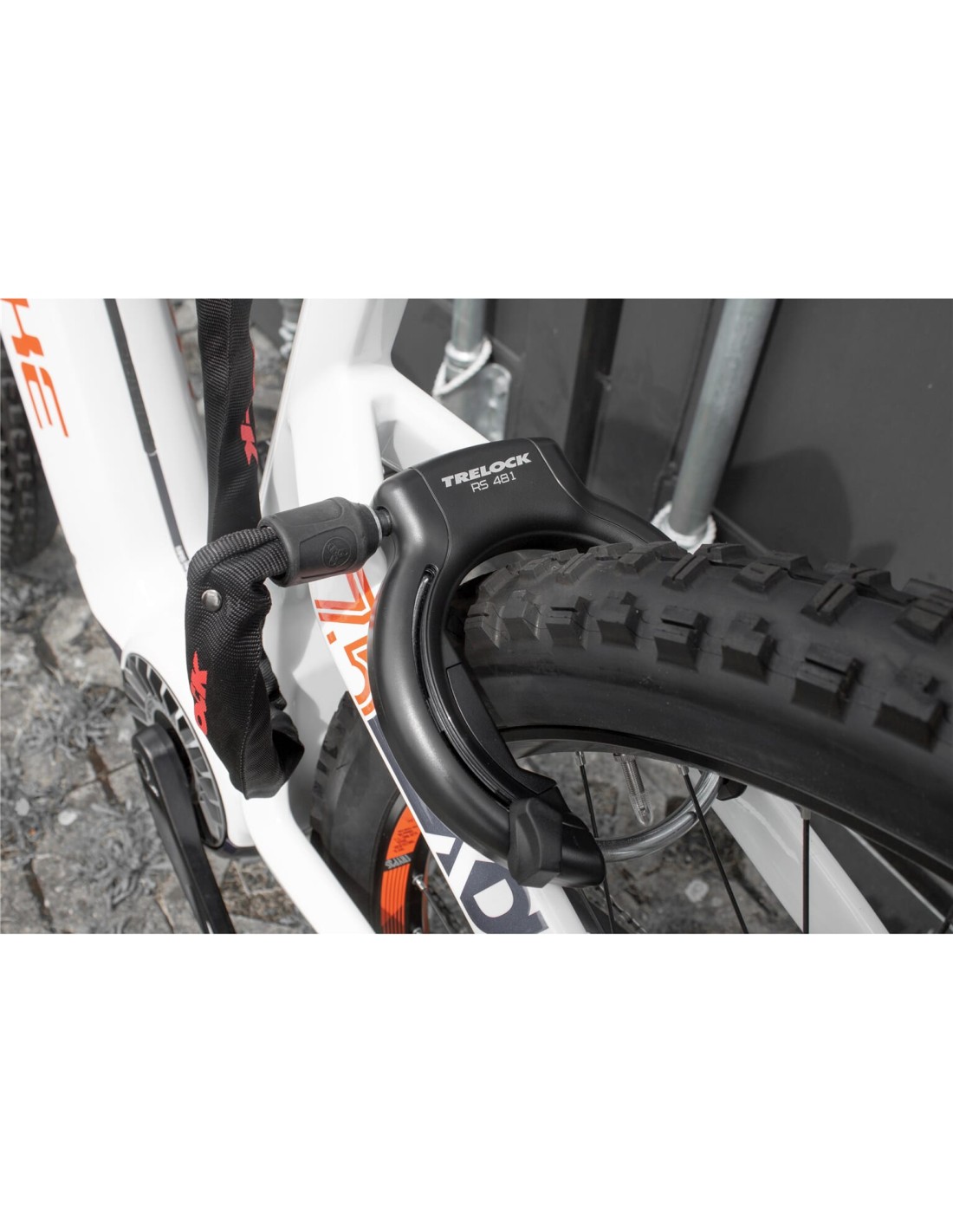 Om recht te doen aan de trend naar brede banden, biedt Trelock fietsers met de RS 481 XXL een frameslot met een extra brede opening - 92 mm om precies te zijn. Het totale formaat blijft echter aangenaam compact en de nieuwe RS 481 XXL doet op geen enkele manier onder voor onze beproefde ringsloten als het gaat om veiligheid. De veiligheid en het sluitbereik kan worden vergroot met Trelock insteekkettingen hiermee is het mogelijk om de fiets aan een vast object te koppelen! LET OP: Bij de AZ-versie kan de sleutel in geopende toestand worden verwijderd. De montage gebeurt ofwel direct op het frame met behulp van de juiste schroefdraad of flexibel met de meegeleverde ZR 20-houder.