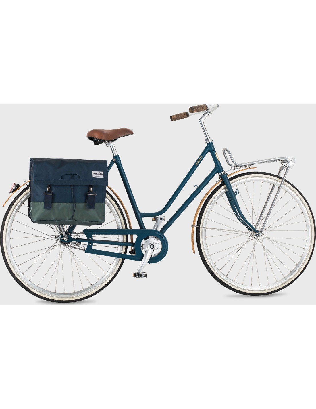 Urban Proof dubbele tas 40L recycled blauw/groen Onze dubbele fietstas is een sterke tas met een verstevigde rug en bodem, gemaakt van gerecycled PET materiaal (RPET). De tas heeft twee ruime opbergvakken met een totale inhoud van 40 liter. Hij is zo gemaakt dat je snel en eenvoudig de tas kan openen en sluiten met de chromen haken. De tas is gemaakt van waterafstotend RPET en heeft aan de binnenkant een waterbestendige voering als extra bescherming voor jouw spullen. Met de daarvoor bestemde riempjes is de dubbele fietstas eenvoudig aan jouw bagagedrager te bevestigen. Voor elk verkocht item doneert URBAN PROOF 5% van de winst aan de stichting Love Not Waste. www.lovenotwaste.com