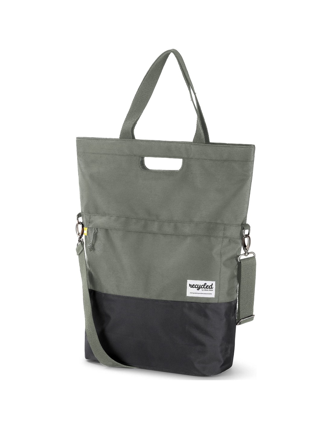 Urban Proof shopper tas 20L recycled groen/grijs Deze shopper fietstas is zo ontworpen dat hij zeer gebruiksvriendelijk is maar er daarnaast ook nog erg mooiuitziet voor dagelijks gebruik. Het is een duurzame tas gemaakt van gerecycled PET materiaal (RPET). De ruime fietstas heeft een inhoud van 20 liter en kan eenvoudig afgesloten worden met de magnetische sluiting. Met de bevestigingshaken die aande achterkant van de tas zitten, is de shopper tas gemakkelijk achterop de fiets te bevestigen. Deze haken zijn weggewerkt meteen ritssluiting. De URBAN PROOF fietstas heeft eenhandvat, een korte band en een schouderband zodat je de tas op elke wenselijke manier kan dragen. Aan de voorkant en aan de binnenkant zit een los vak om eenvoudig je sleutels, portemonnee en telefoon op te bergen. Voor elk verkocht item doneert URBAN PROOF 5% van de winst aan de stichting Love Not Waste. www.lovenotwaste.com