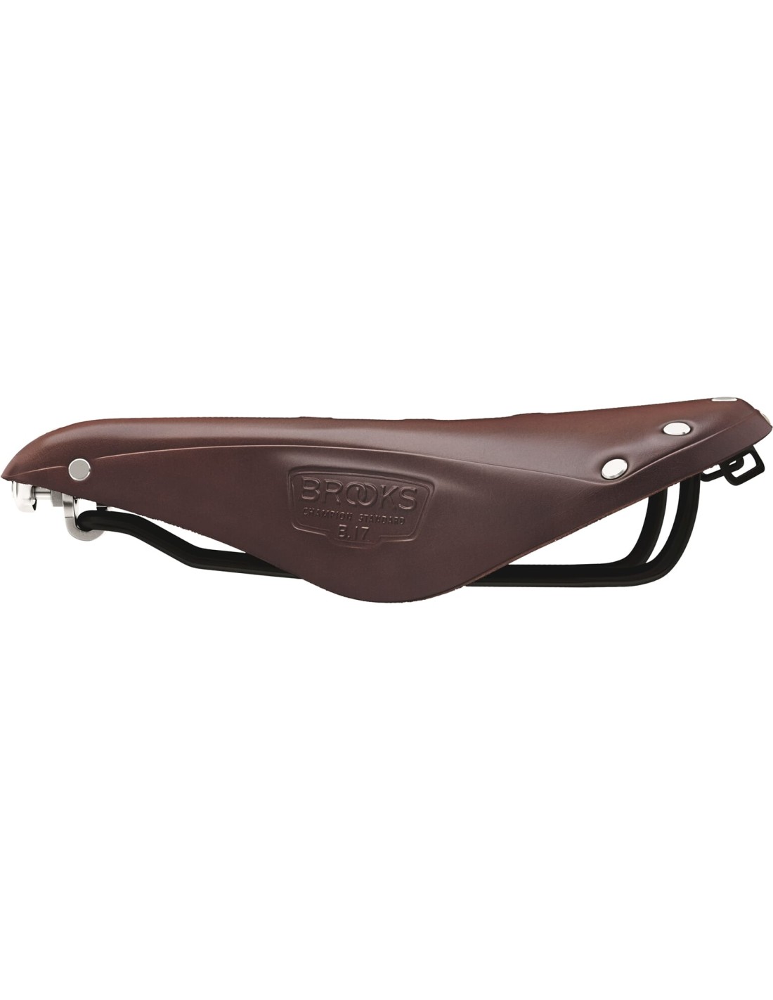 De B17, al meer dan 100 jaar ons bestverkochte model, is het ideale fietszadel voor woon-werkverkeer, gravel, wegfietsen en toertochten. Dankzij de flexibele, hangmatachtige vorm die met elke pedaalslag meebeweegt, is de B17 een uiterst comfortabel zadel. Dit fietszadel is ontworpen voor de 60°-fietshouding. Handgemaakt in Engeland van prachtig en duurzaam 100% plantaardig gelooid leer dat zich individueel aanpast aan elke fietser. De B17 is afgewerkt met hoogwaardige stalen klinknagels en een stevige onderkant.